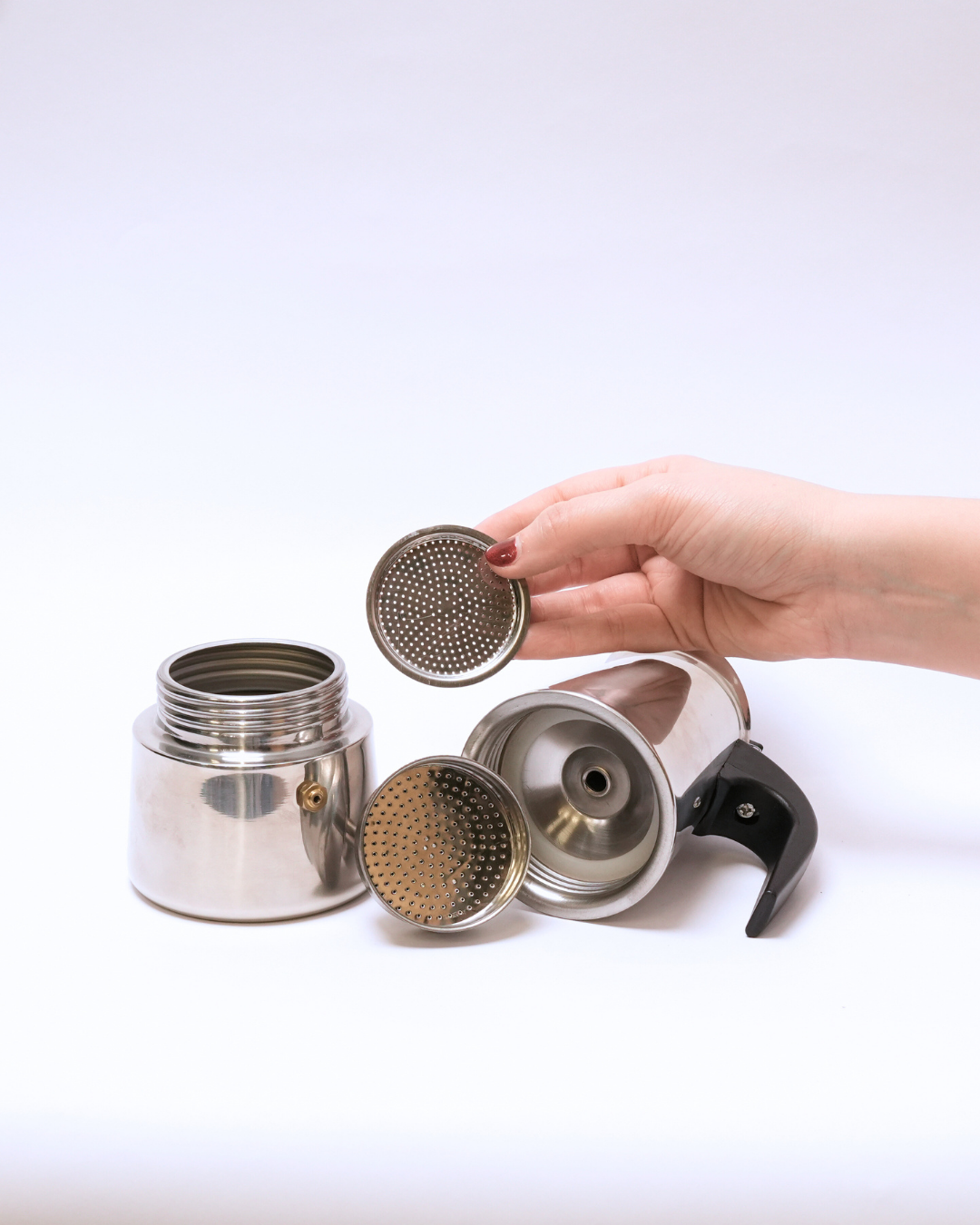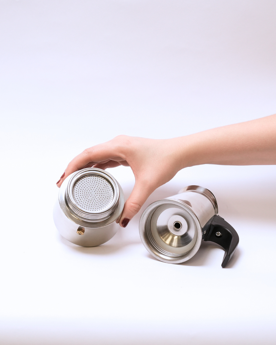 Esta cafetera Italiana está elaborada de Acero con mango ergonómico en plástico para más seguridad
