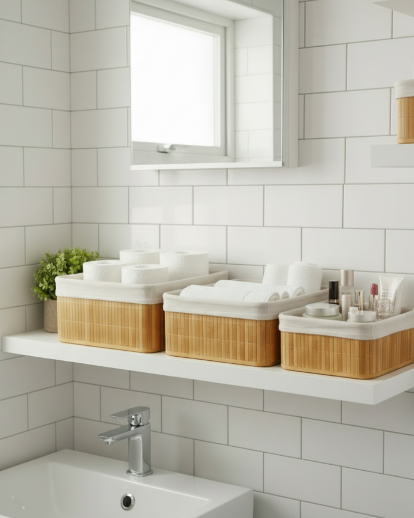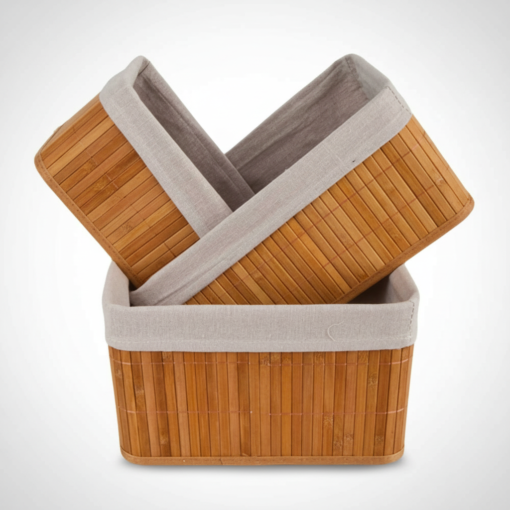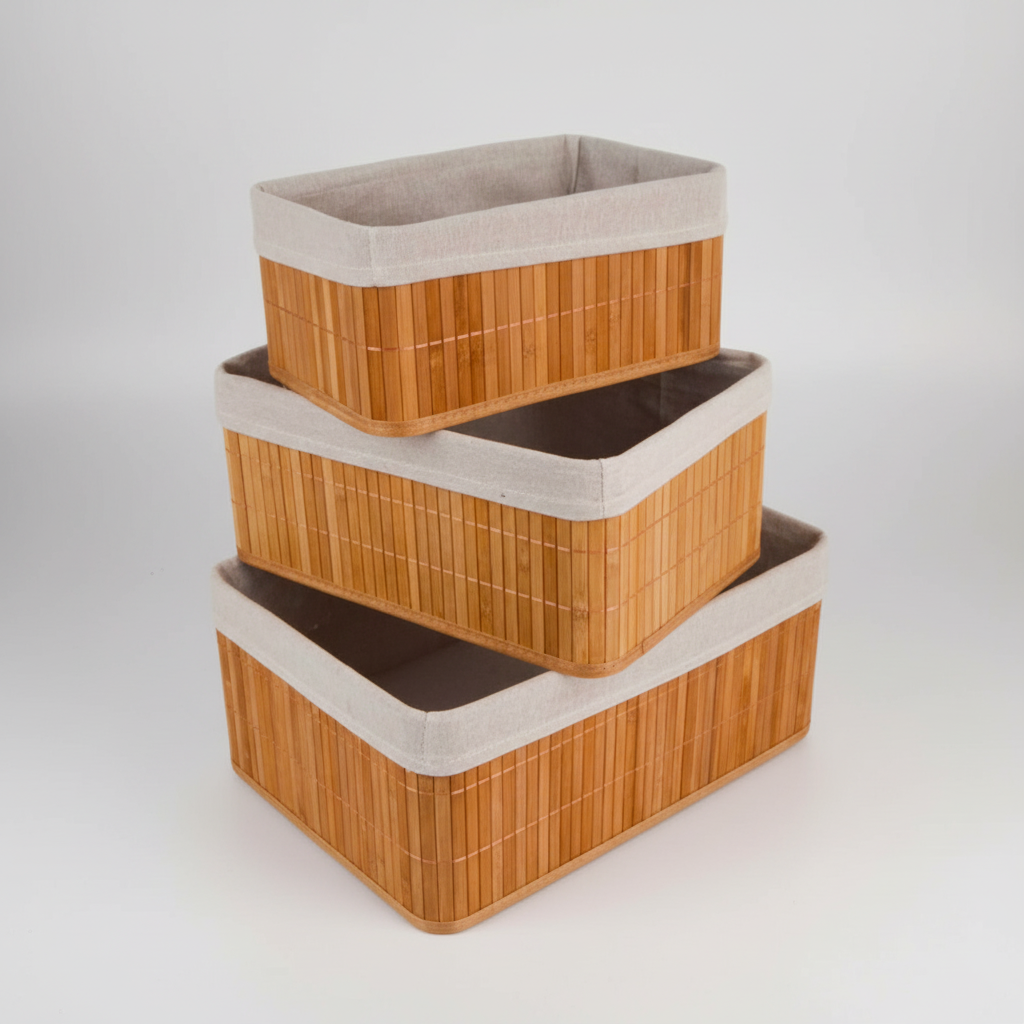Este kit de cestas organizadoras de bambú con forro es ideal para mantener tu hogar ordenado sin perder el toque acogedor. Son resistentes, prácticas y perfectas para organizar objetos en el dormitorio, la sala, el baño o cualquier rincón que quieras ver más limpio y armonioso. Su diseño natural aporta calidez y hace que el orden se sienta ligero y agradable a la vista.