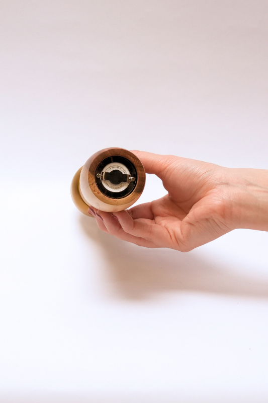 Este Molinillo está elaborado de madera maciza de acacia natural. La textura natural se puede adaptar a cualquier estilo de mobiliario el cuerpo de madera ergonómicamente aerodinámico siempre se verá elegante y flexible en su mesa de comedor